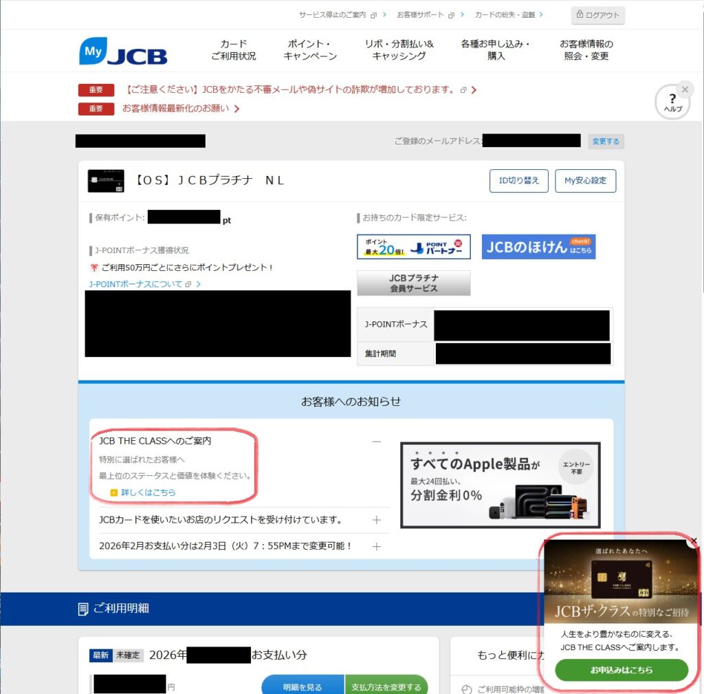 実はthe Classを目指してひっそりとプラチナカードで修行していた若輩者の私にJCB the Classカードのインビテーションが来ました!!!