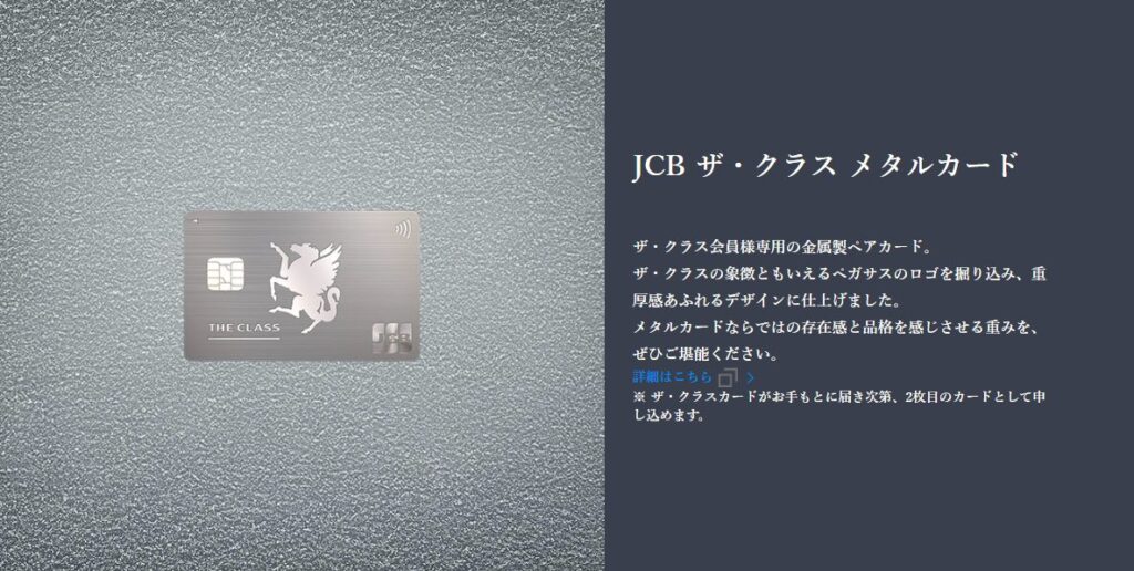 もちろんメタルカード(税込み33000円)も申し込み。JCBカードのマイページにthe classが追加されたら申し込めるようになりました。